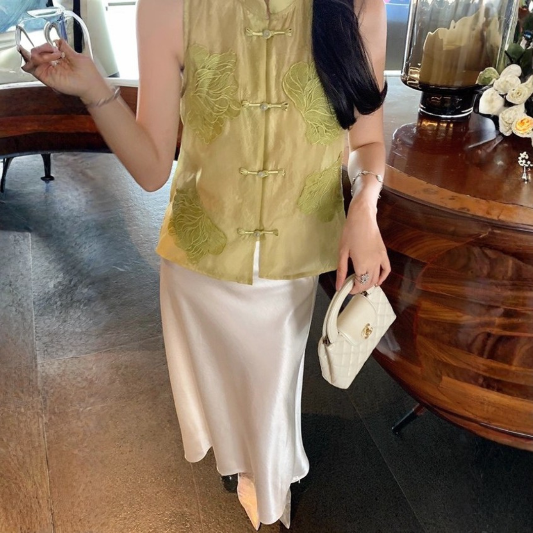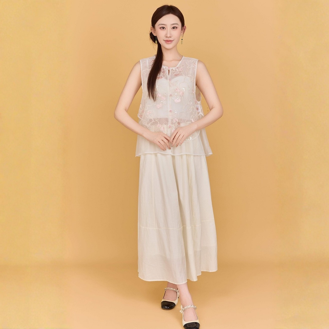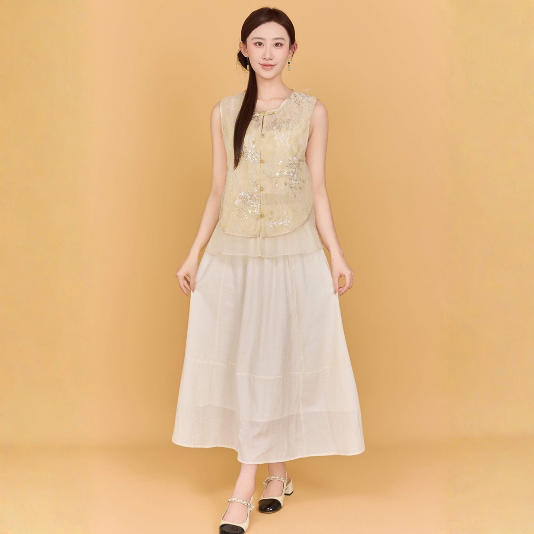 小众波点花半身大摆长裙 Artisanal Brushstroke Polka Maxi Skirt